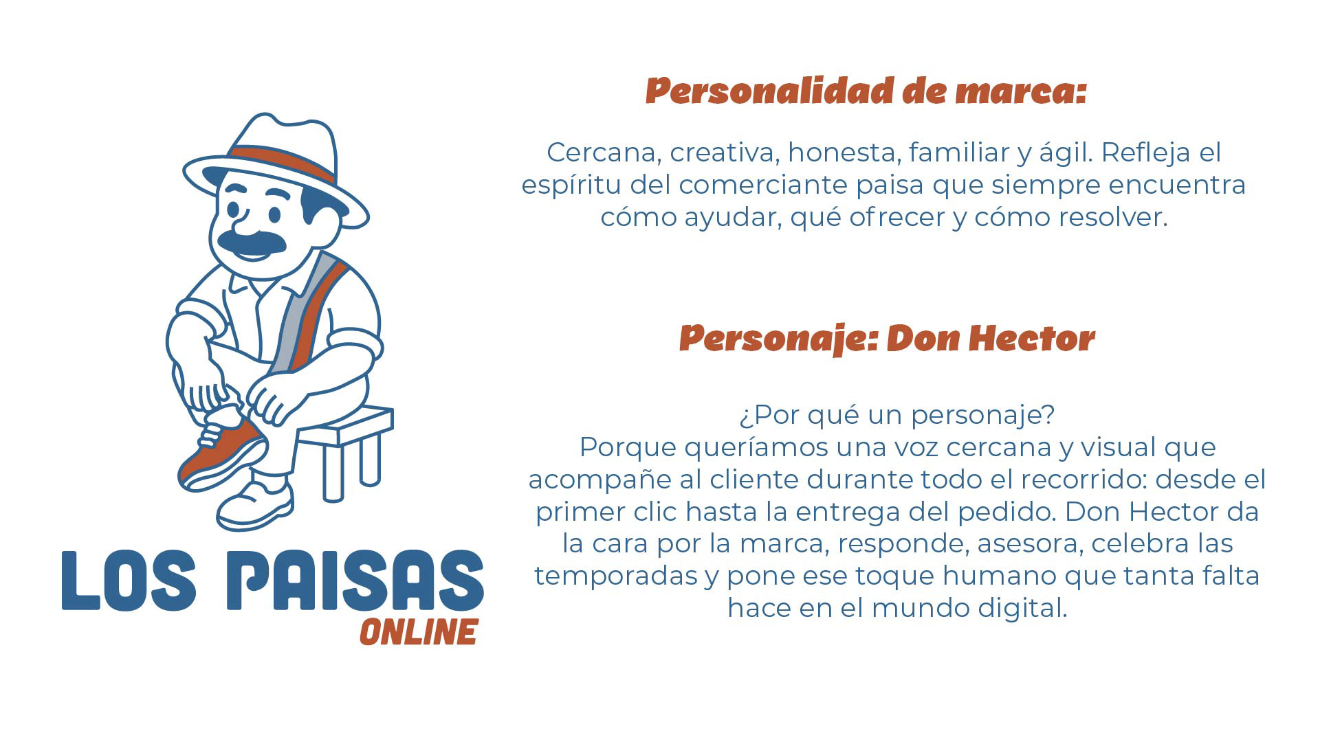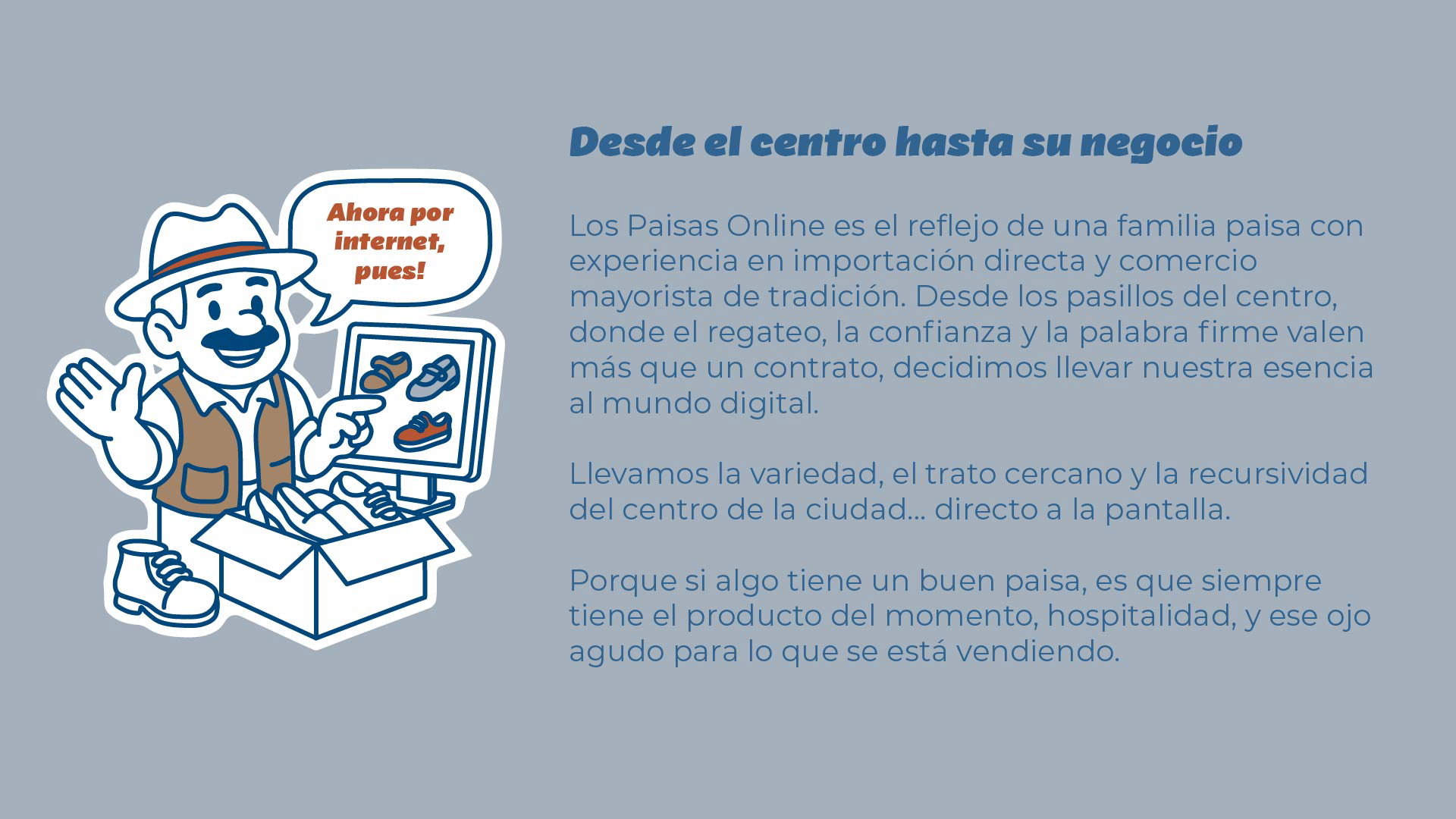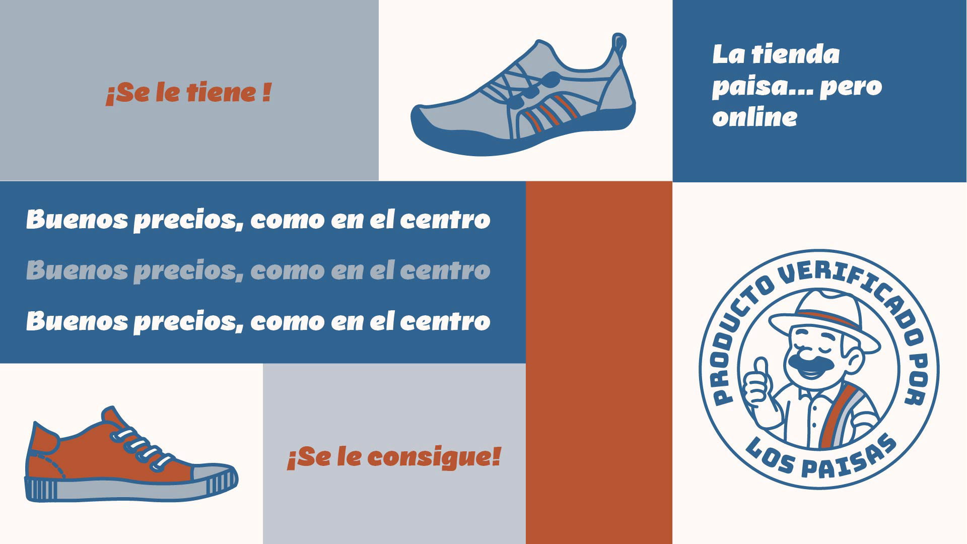 Los Paisas Online is a wholesale footwear brand rooted in traditional commerce from the city center, now translated into a digital experience. This project focuses on building a warm, approachable and authentic brand identity inspired by the paisa culture — known for its resourcefulness, trust and close customer relationships. The visual system is centered around a character that embodies the spirit of the brand: friendly, experienced and always ready to help. Through illustration, typography and a flexible graphic system, the brand communicates variety, affordability and reliability. The project includes logo design, character development, seasonal illustrations, iconography, and digital applications, creating a cohesive identity that connects traditional retail with modern ecommerce.